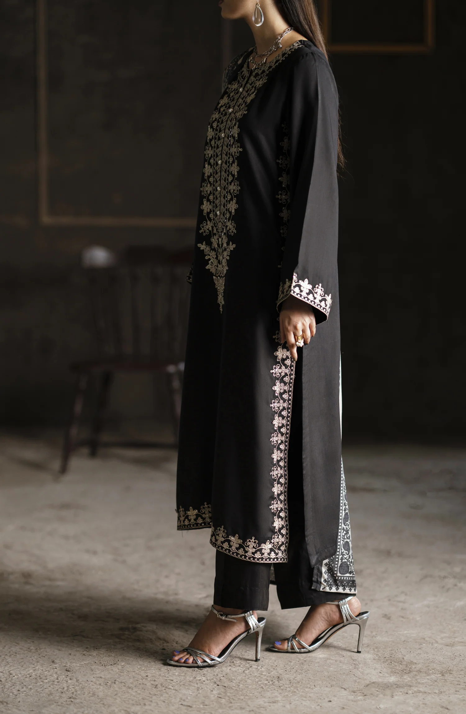 Stitched Premium Silk Viscose 3 Piece Suit Embroidered Shirt Plain Trouser Silk Dupatta