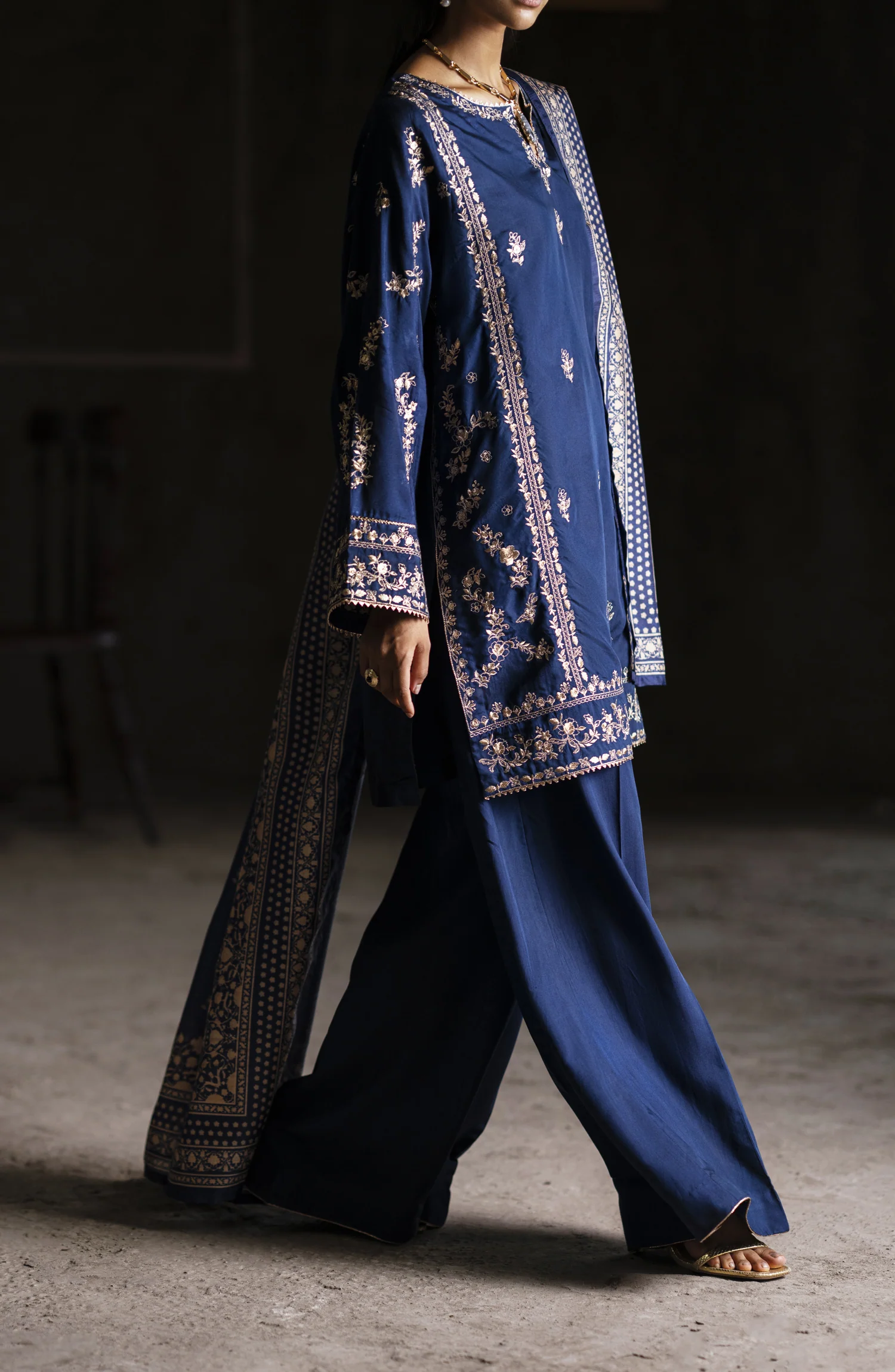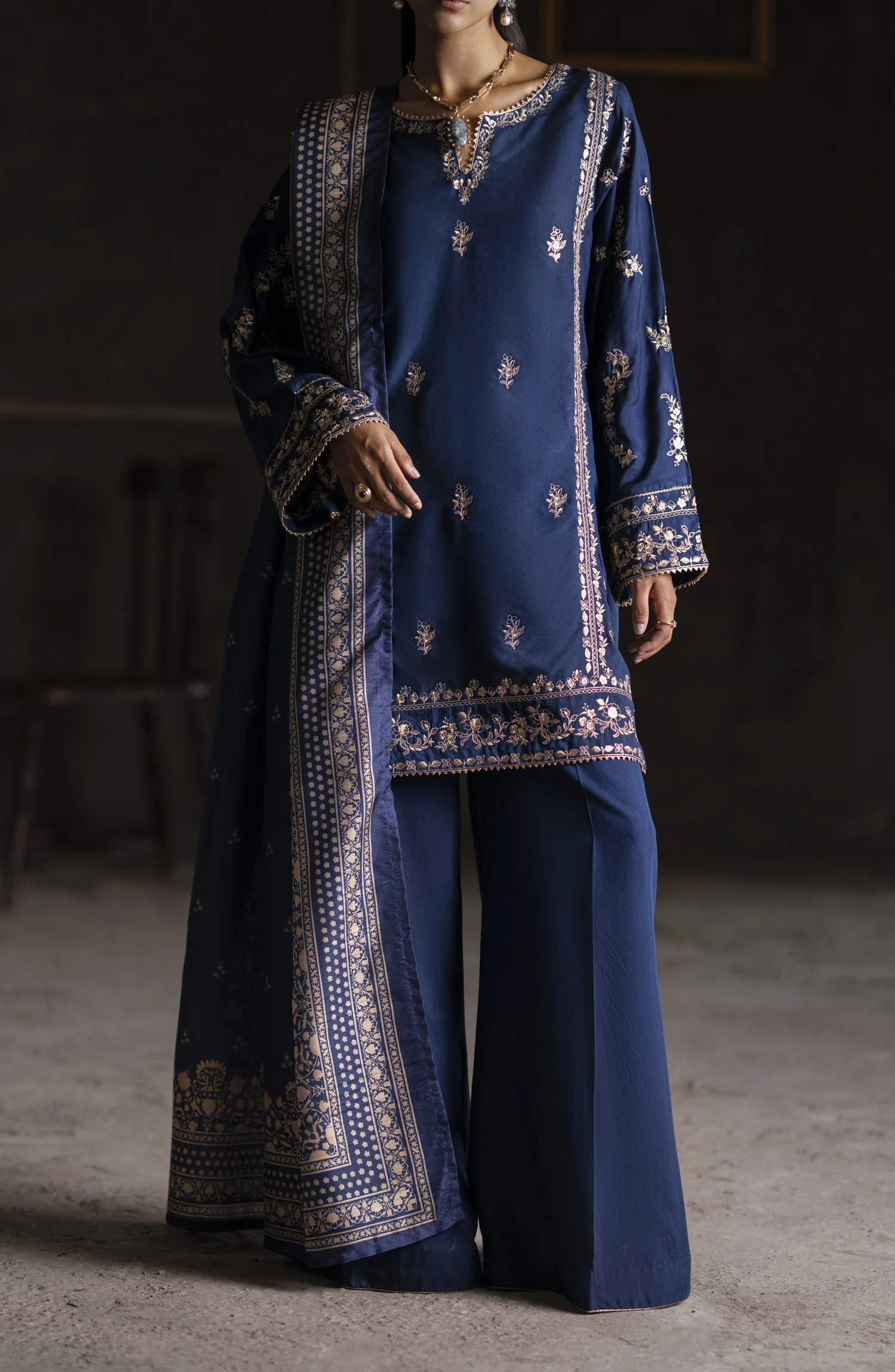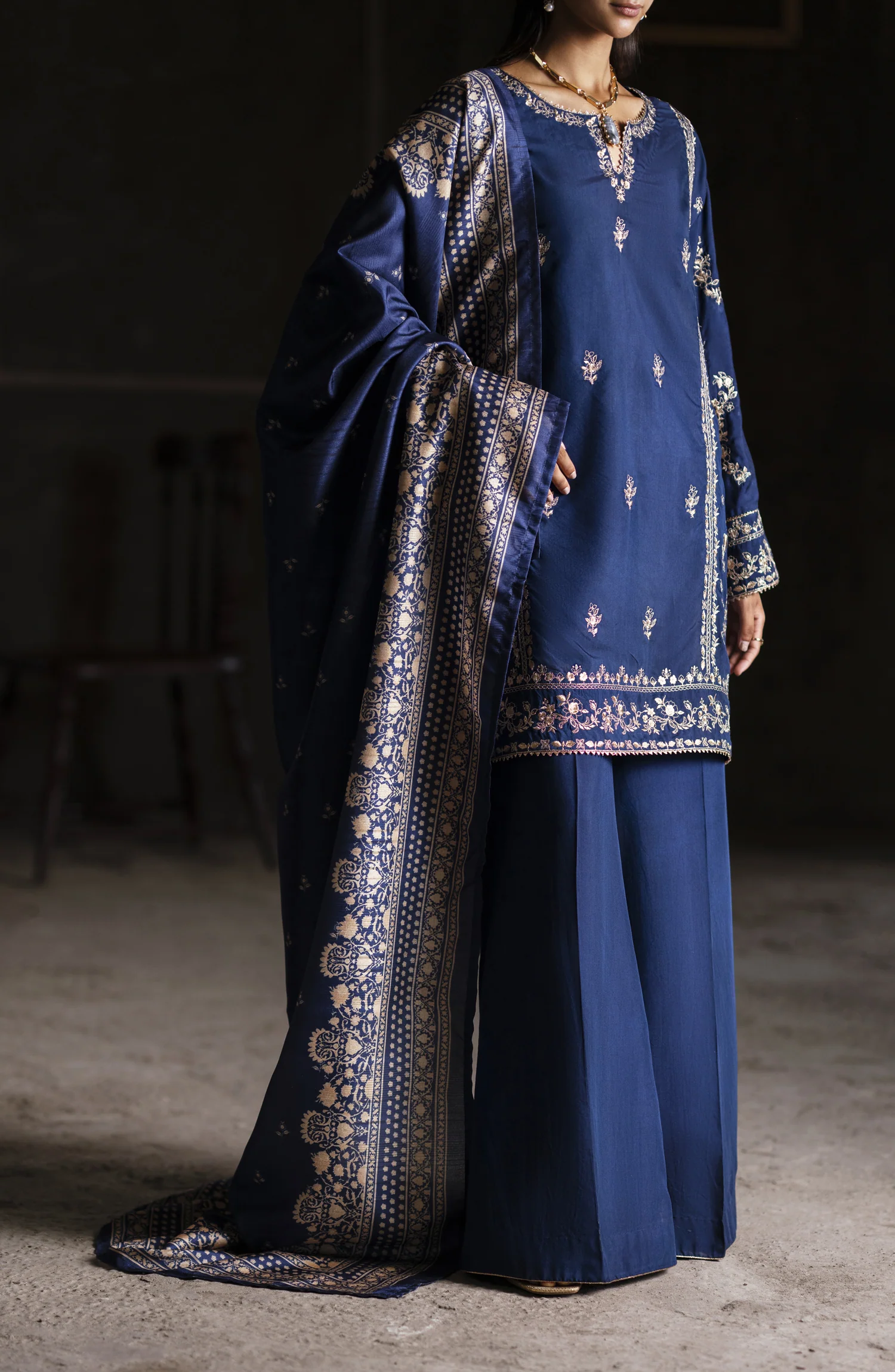 Casual Lite Aik Sitara Premium Embroidered Silk Viscose Stitched 3 Piece Suit – Midnight Elegance – CL25AIS – Blue – Festive Collection